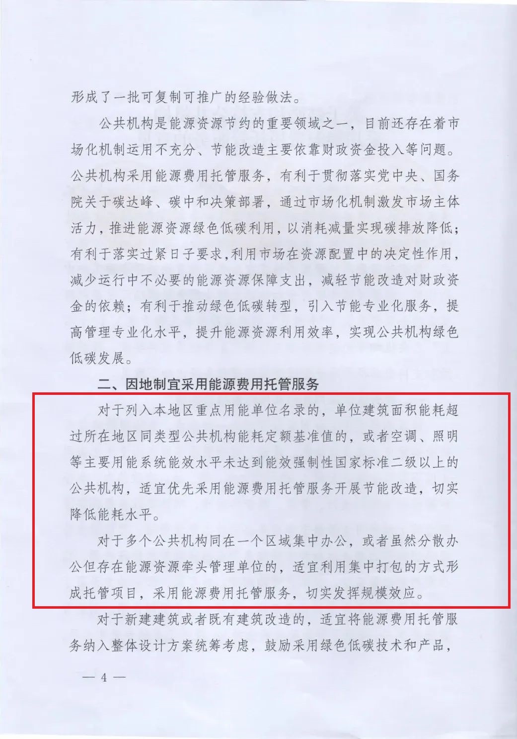 。針對(duì)集中辦公或有牽頭管理單位的公共機(jī)構(gòu),明確利用集中打包形式采用能源費(fèi)用托管服務(wù)。還要求新建、改造建筑時(shí),在設(shè)計(jì)方案階段統(tǒng)籌考慮能源費(fèi)用托管服務(wù),從源頭上把控。